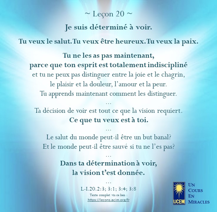 Leçon 20 Publié le 20 janvier 202519 janvier 2025 par Au delà du perçu ! https://lecons.acim.org/fr/chapters/lesson-20 Partager : Partager sur Facebook(ouvre dans une nouvelle fenêtre) Facebook Email a link to a friend(ouvre dans une nouvelle fenêtre) E-mail Imprimer(ouvre dans une nouvelle fenêtre) Imprimer J’aime chargement… Similaire