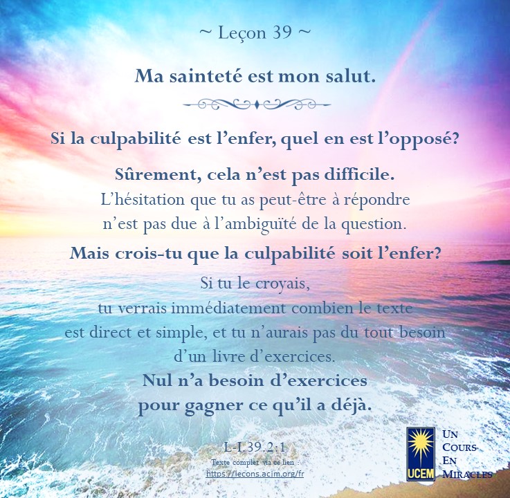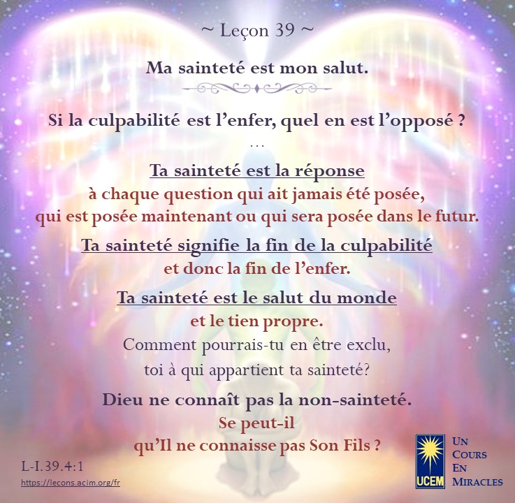 Leçon 39 Publié le 8 février 20256 février 2025 par Au delà du perçu ! https://lecons.acim.org/fr/chapters/lesson-39 Partager : Partager sur Facebook(ouvre dans une nouvelle fenêtre) Facebook Email a link to a friend(ouvre dans une nouvelle fenêtre) E-mail Imprimer(ouvre dans une nouvelle fenêtre) Imprimer J’aime chargement… Similaire