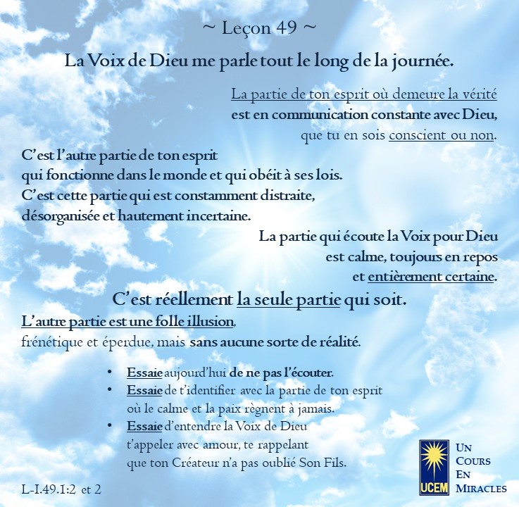 Leçon 49 Publié le 18 février 202512 février 2025 par Au delà du perçu ! https://lecons.acim.org/fr/chapters/lesson-49 Partager : Partager sur Facebook(ouvre dans une nouvelle fenêtre) Facebook Email a link to a friend(ouvre dans une nouvelle fenêtre) E-mail Imprimer(ouvre dans une nouvelle fenêtre) Imprimer J’aime chargement… Similaire