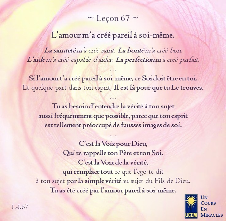 Leçon 67 Publié le 7 mars 20252 mars 2025 par Au delà du perçu ! https://lecons.acim.org/fr/chapters/lesson-67 Partager : Partager sur Facebook(ouvre dans une nouvelle fenêtre) Facebook Email a link to a friend(ouvre dans une nouvelle fenêtre) E-mail Imprimer(ouvre dans une nouvelle fenêtre) Imprimer J’aime chargement… Similaire