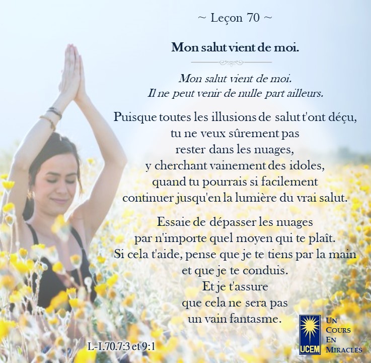Leçon 70 Publié le 10 mars 20259 mars 2025 par Au delà du perçu ! https://lecons.acim.org/fr/chapters/lesson-70 Partager : Partager sur Facebook(ouvre dans une nouvelle fenêtre) Facebook Email a link to a friend(ouvre dans une nouvelle fenêtre) E-mail Imprimer(ouvre dans une nouvelle fenêtre) Imprimer J’aime chargement… Similaire