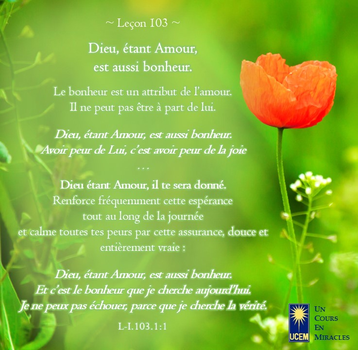 Leçon 103 Publié le 12 avril 2025 par Au delà du perçu ! https://lecons.acim.org/fr/chapters/lesson-103 Partager : Partager sur Facebook(ouvre dans une nouvelle fenêtre) Facebook Email a link to a friend(ouvre dans une nouvelle fenêtre) E-mail Imprimer(ouvre dans une nouvelle fenêtre) Imprimer J’aime chargement… Similaire
