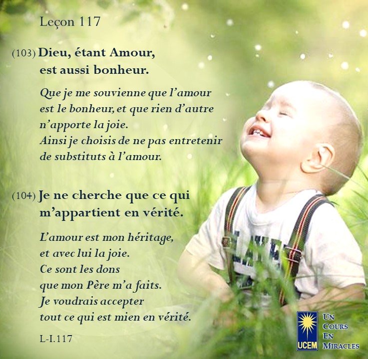 Leçon 117 – Révision III Publié le 27 avril 2025 par Au delà du perçu ! https://lecons.acim.org/fr/chapters/lesson-117 Partager : Partager sur Facebook(ouvre dans une nouvelle fenêtre) Facebook Email a link to a friend(ouvre dans une nouvelle fenêtre) E-mail Imprimer(ouvre dans une nouvelle fenêtre) Imprimer J’aime chargement… Similaire