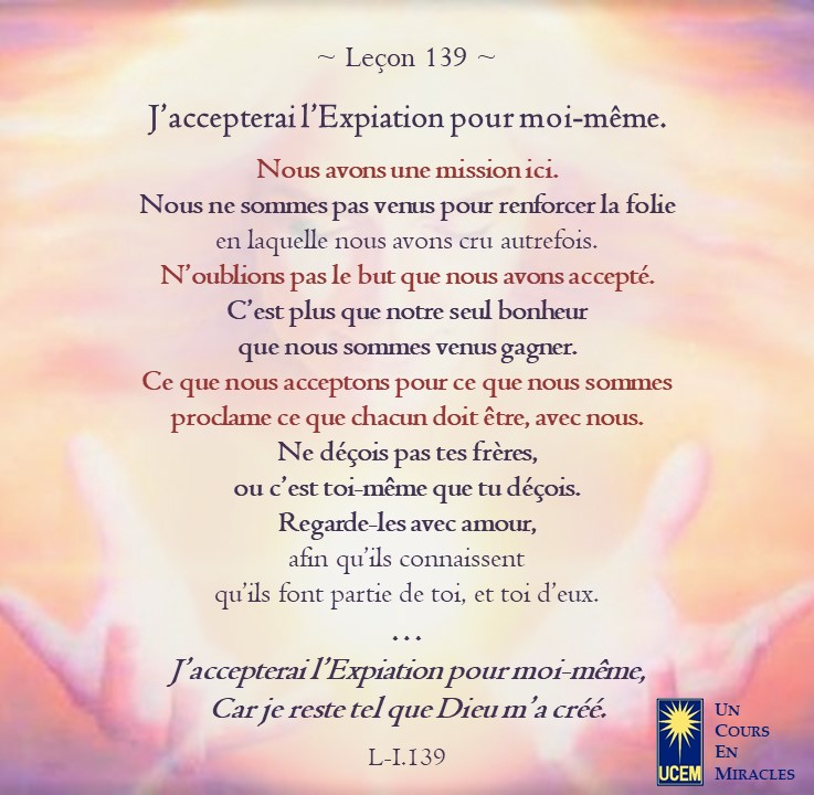 LEÇON 139 Publié le 18 Mai 202518 Mai 2025 par Au delà du perçu ! J’accepterai l’Expiation pour moi-même. https://lecons.acim.org/fr/chapters/lesson-139 Partager : Partager sur Facebook(ouvre dans une nouvelle fenêtre) Facebook Email a link to a friend(ouvre dans une nouvelle fenêtre) E-mail Imprimer(ouvre dans une nouvelle fenêtre) Imprimer J’aime chargement… Similaire