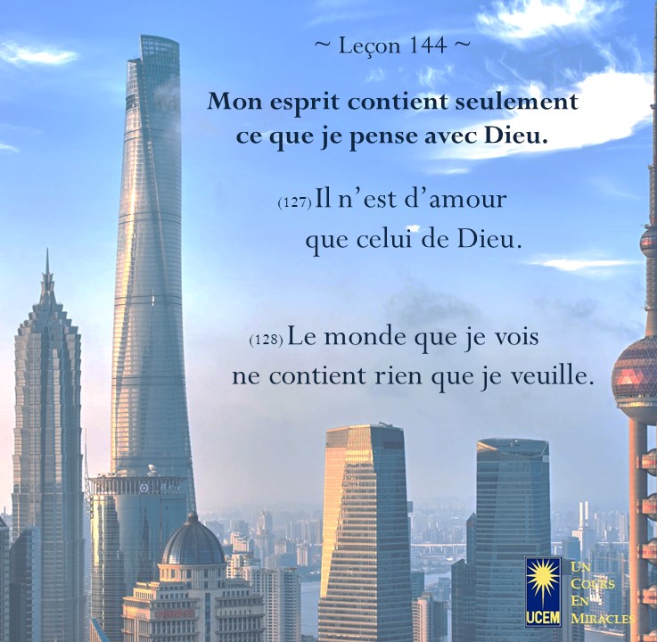 LEÇON 144 – Révision IV Publié le 23 Mai 2025 par Au delà du perçu ! Mon esprit contient seulement ce que je pense avec Dieu. https://lecons.acim.org/fr/chapters/lesson-144 Partager : Partager sur Facebook(ouvre dans une nouvelle fenêtre) Facebook Email a link to a friend(ouvre dans une nouvelle fenêtre) E-mail Imprimer(ouvre dans une nouvelle fenêtre) Imprimer J’aime chargement… Similaire