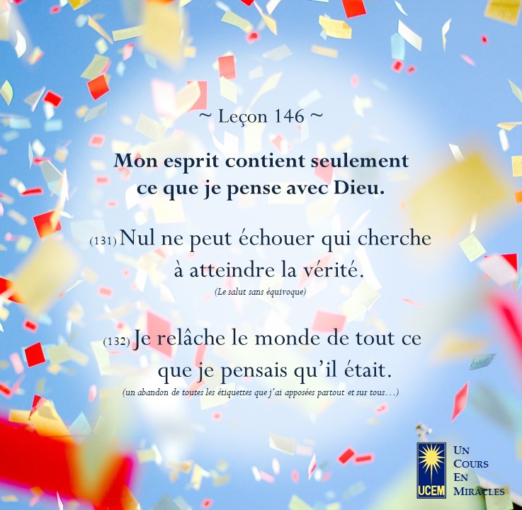 Leçon 146 – Révision IV Publié le 25 Mai 202524 Mai 2025 par Au delà du perçu ! Mon esprit contient seulement ce que je pense avec Dieu. Partager : Partager sur Facebook(ouvre dans une nouvelle fenêtre) Facebook Email a link to a friend(ouvre dans une nouvelle fenêtre) E-mail Imprimer(ouvre dans une nouvelle fenêtre) Imprimer J’aime chargement… Similaire