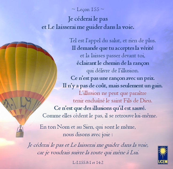 LEÇON 155 Publié le 3 juin 2025 par Au delà du perçu ! Je céderai le pas et Le laisserai me guider dans la voie. https://lecons.acim.org/fr/chapters/lesson-155 Partager : Partager sur Facebook(ouvre dans une nouvelle fenêtre) Facebook Email a link to a friend(ouvre dans une nouvelle fenêtre) E-mail Imprimer(ouvre dans une nouvelle fenêtre) Imprimer J’aime chargement… Similaire