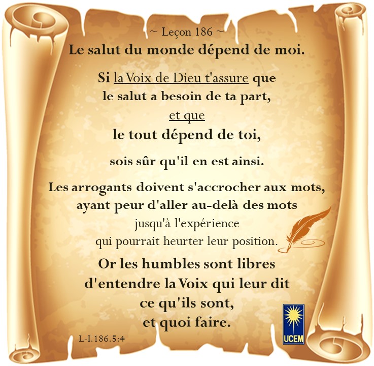 LEÇON 186 Publié le 4 juillet 20252 juillet 2025 par Au delà du perçu ! Le salut du monde dépend de moi. https://lecons.acim.org/fr/chapters/lesson-186 Partager : Partager sur Facebook(ouvre dans une nouvelle fenêtre) Facebook Email a link to a friend(ouvre dans une nouvelle fenêtre) E-mail Imprimer(ouvre dans une nouvelle fenêtre) Imprimer J’aime chargement… Similaire