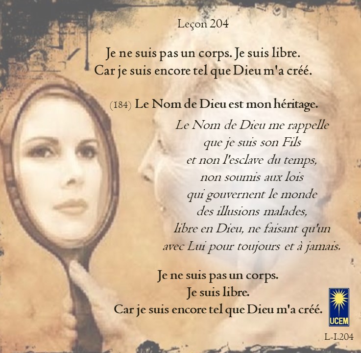 LEÇON 204 – Révision VI Publié le 22 juillet 202520 juillet 2025 par Au delà du perçu ! Je ne suis pas un corps. Je suis libre.Car je suis encore tel que Dieu m’a créé. https://lecons.acim.org/fr/chapters/lesson-204 Partager : Partager sur Facebook(ouvre dans une nouvelle fenêtre) Facebook Email a link to a friend(ouvre dans une nouvelle fenêtre) E-mail Imprimer(ouvre dans une nouvelle fenêtre) Imprimer J’aime chargement… Similaire