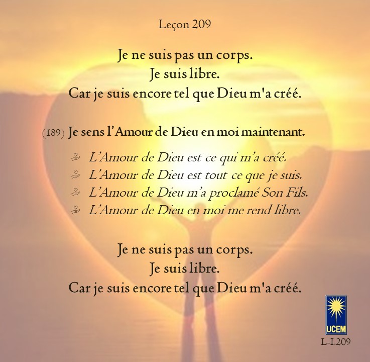 LEÇON 209 – Révision VI Publié le 27 juillet 202520 juillet 2025 par Au delà du perçu ! https://lecons.acim.org/fr/chapters/lesson-209 Partager : Partager sur Facebook(ouvre dans une nouvelle fenêtre) Facebook Email a link to a friend(ouvre dans une nouvelle fenêtre) E-mail Imprimer(ouvre dans une nouvelle fenêtre) Imprimer J’aime chargement… Similaire