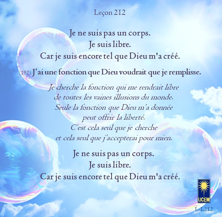 Leçon 212 – Révision VI Publié le 30 juillet 202527 juillet 2025 par Au delà du perçu ! Je ne suis pas un corps. Je suis libre.Car je suis encore tel que Dieu m’a créé. https://lecons.acim.org/fr/chapters/lesson-212 Partager : Partager sur Facebook(ouvre dans une nouvelle fenêtre) Facebook Email a link to a friend(ouvre dans une nouvelle fenêtre) E-mail Imprimer(ouvre dans une nouvelle fenêtre) Imprimer J’aime chargement… Similaire