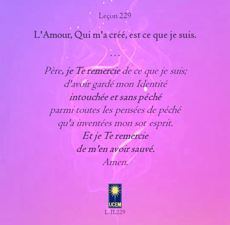 LEÇON 229 Publié le 16 août 202511 août 2025 par Au delà du perçu ! L’Amour, Qui m’a créé, est ce que je suis. https://lecons.acim.org/fr/chapters/lesson-229 Partager : Partager sur Facebook(ouvre dans une nouvelle fenêtre) Facebook Email a link to a friend(ouvre dans une nouvelle fenêtre) E-mail Imprimer(ouvre dans une nouvelle fenêtre) Imprimer J’aime chargement… Similaire