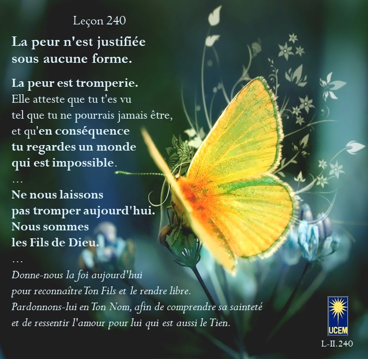 LEÇON 240 Publié le 27 août 202524 août 2025 par Au delà du perçu ! La peur n’est justifiée sous aucune forme. https://lecons.acim.org/fr/chapters/lesson-240 Partager : Partager sur Facebook(ouvre dans une nouvelle fenêtre) Facebook Email a link to a friend(ouvre dans une nouvelle fenêtre) E-mail Imprimer(ouvre dans une nouvelle fenêtre) Imprimer J’aime chargement… Similaire