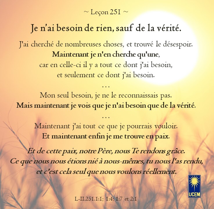 LEÇON 251 Publié le 7 septembre 20257 septembre 2025 par Au delà du perçu ! Je n’ai besoin de rien, sauf de la vérité. https://lecons.acim.org/fr/chapters/lesson-251 Partager : Partager sur Facebook(ouvre dans une nouvelle fenêtre) Facebook Email a link to a friend(ouvre dans une nouvelle fenêtre) E-mail Imprimer(ouvre dans une nouvelle fenêtre) Imprimer J’aime chargement… Similaire
