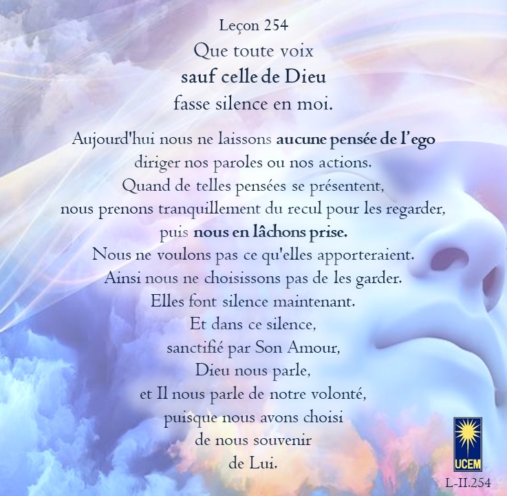 LEÇON 254 Publié le 10 septembre 20257 septembre 2025 par Au delà du perçu ! Que toute voix sauf celle de Dieu fasse silence en moi. https://lecons.acim.org/fr/chapters/lesson-254 Partager : Partager sur Facebook(ouvre dans une nouvelle fenêtre) Facebook Email a link to a friend(ouvre dans une nouvelle fenêtre) E-mail Imprimer(ouvre dans une nouvelle fenêtre) Imprimer J’aime chargement… Similaire