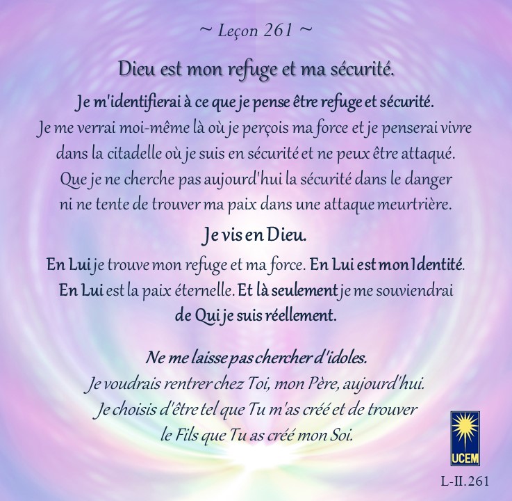 LEÇON 261 Publié le 17 septembre 202516 septembre 2025 par Au delà du perçu ! Dieu est mon refuge et ma sécurité. https://lecons.acim.org/fr/chapters/lesson-261 Partager : Partager sur Facebook(ouvre dans une nouvelle fenêtre) Facebook Email a link to a friend(ouvre dans une nouvelle fenêtre) E-mail Imprimer(ouvre dans une nouvelle fenêtre) Imprimer J’aime chargement… Similaire