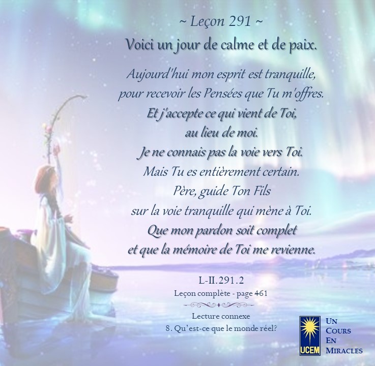LEÇON 291 Publié le 17 octobre 202515 octobre 2025 par Au delà du perçu ! Voici un jour de calme et de paix. https://lecons.acim.org/fr/chapters/lesson-291 Partager : Partager sur Facebook(ouvre dans une nouvelle fenêtre) Facebook Email a link to a friend(ouvre dans une nouvelle fenêtre) E-mail Imprimer(ouvre dans une nouvelle fenêtre) Imprimer J’aime chargement… Similaire