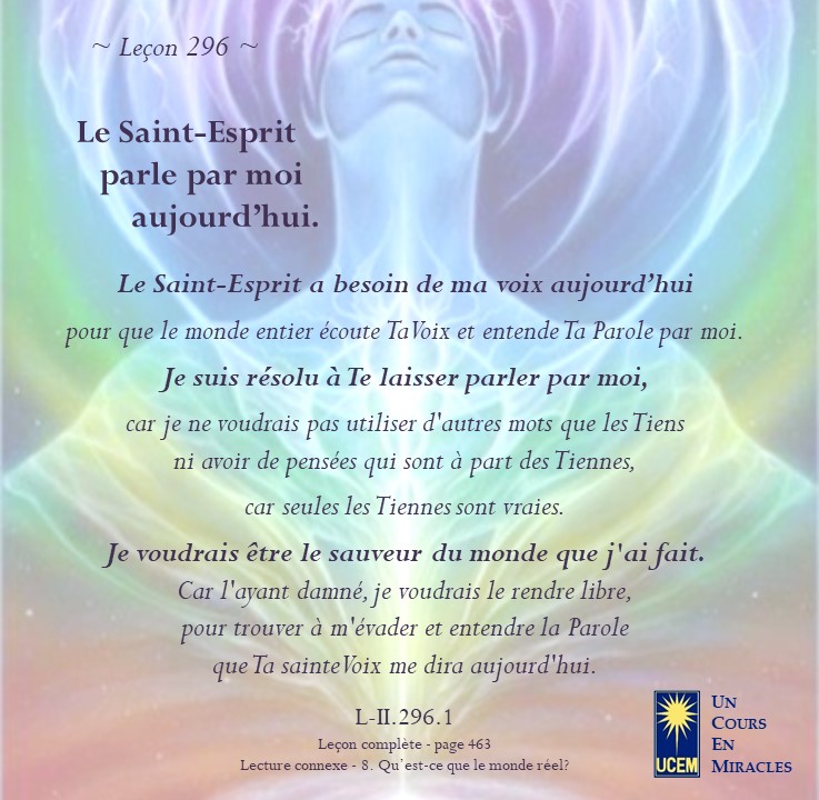 LEÇON 296 Publié le 22 octobre 202519 octobre 2025 par Au delà du perçu ! Le Saint-Esprit parle par moi aujourd’hui. https://lecons.acim.org/fr/chapters/lesson-296 Partager : Partager sur Facebook(ouvre dans une nouvelle fenêtre) Facebook Email a link to a friend(ouvre dans une nouvelle fenêtre) E-mail Imprimer(ouvre dans une nouvelle fenêtre) Imprimer J’aime chargement… Similaire
