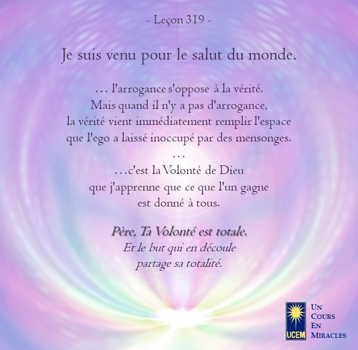 LEÇON 319 Publié le 14 novembre 20253 novembre 2025 par Au delà du perçu ! Je suis venu pour le salut du monde. https://lecons.acim.org/fr/chapters/lesson-319 Partager : Partager sur Facebook(ouvre dans une nouvelle fenêtre) Facebook Email a link to a friend(ouvre dans une nouvelle fenêtre) E-mail Imprimer(ouvre dans une nouvelle fenêtre) Imprimer J’aime chargement… Similaire