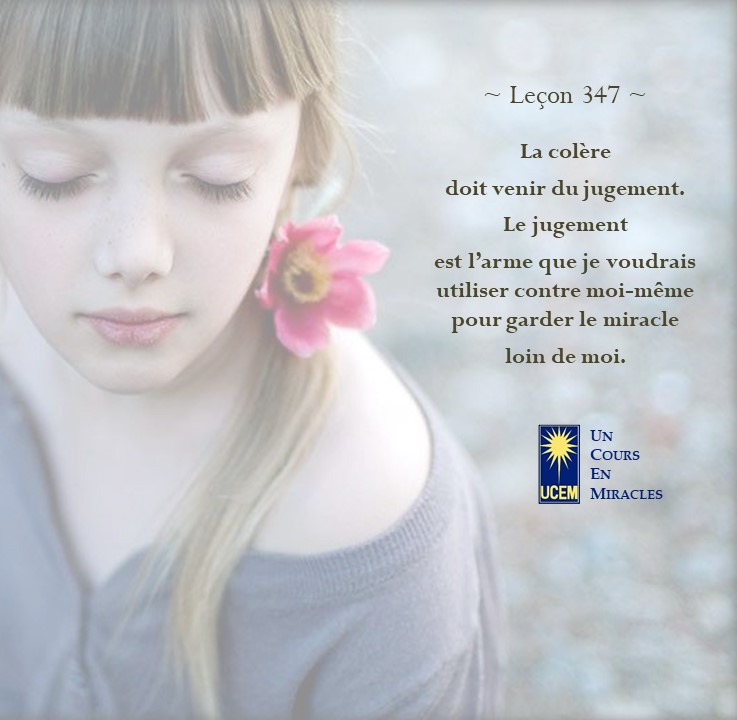 1. Père, je veux ce qui va à l’encontre de ma volonté et je ne veux pas ce que ma volonté est d’avoir. Redresse mon esprit, mon Père. Il est malade. Mais tu as offert la liberté et je choisis de réclamer Ton don aujourd’hui. Ainsi je remets tout jugement à Celui Que Tu m’as donné afin qu’Il juge pour moi. Il voit ce que je contemple et pourtant Il connaît la vérité. Il regarde la douleur et pourtant Il comprend qu’elle n’est pas réelle, et dans Sa compréhension elle est guérie. Il donne les miracles que mes rêves voudraient cacher à ma conscience. Qu’Il juge, Lui, aujourd’hui. Je ne connais pas ma volonté, mais Il est sûr que c’est la Tienne. Et Il parlera pour moi et appellera Tes miracles à venir à moi.